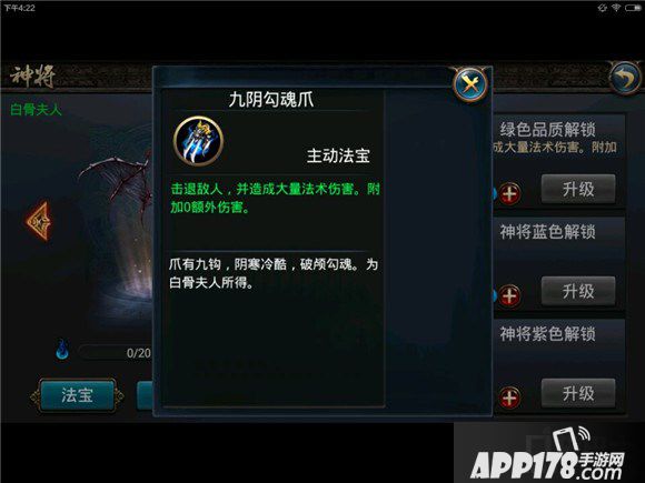 以上就是APP178手游小编为您带来的西游降魔篇手游神将白骨夫人怎么样 白骨夫人法宝分析。更多精彩内容请继续关注APP178手游西游降魔篇手游专区。