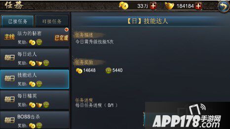 每日任务是获得升级经验的另一个重要途径。当等级到达20级以后,每天都有足够的每日任务可以完成。每日任务中有非常多的任务类型供玩家选择。当然,这些任务通常轻松并且容易完成。