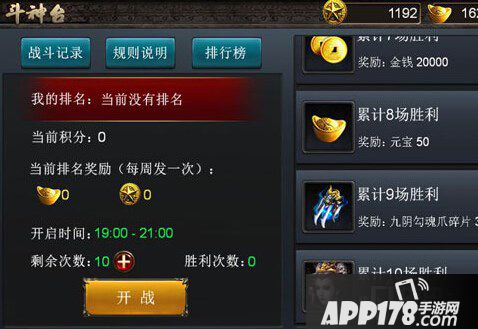 玩家每参加一场战斗都会获得一定积分。全服玩家进行排名,分数越高排名越高。