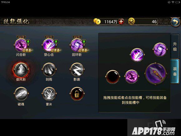 技能装备是可以把已有的技能放到快捷栏中,方便在战斗中使用,前期只有3个技能,所以第四个技能栏是空的。