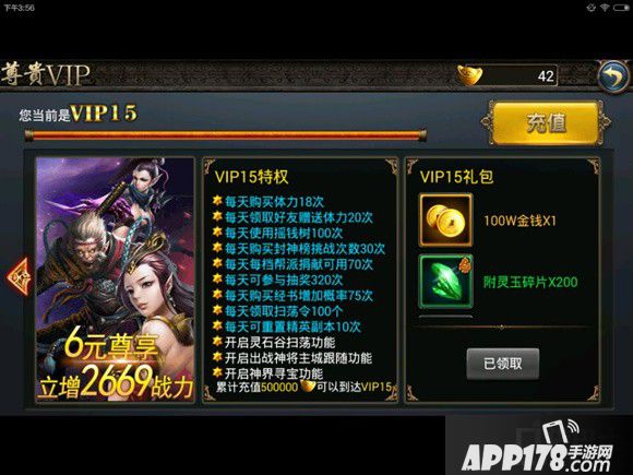 VIP15特权(累计充值500000元宝可以到达VIP15)