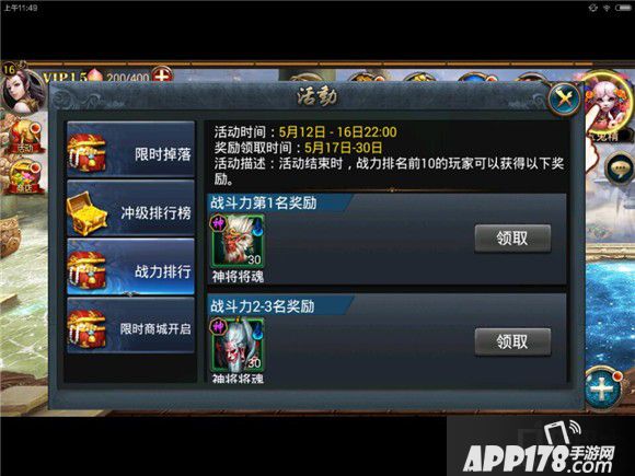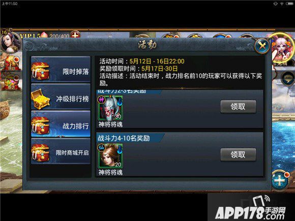 活动描述:活动结束时,战力排行前10名的玩家可以获得以下奖励。