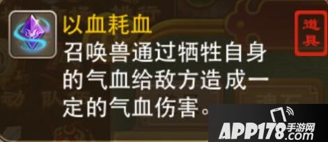 以血耗血:召唤兽通过牺牲自身的气血给对方造成一定的气血伤害。