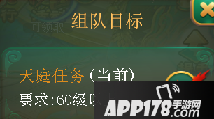 当玩家等级达到60级后,将开启天庭任务副本。这时,玩家可以自行创建队伍或者加入其他玩家的队伍,组成由5名60级以上的玩家构成的五人队方可进入天庭任务副本。