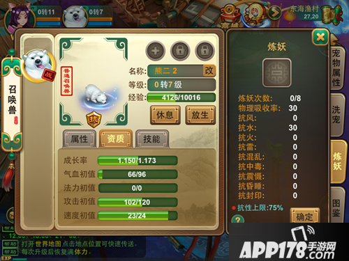 玩家在主线关卡当中会得到各类型的炼妖石。通过炼妖,玩家可以提升召唤兽的各类抗性。但是要注意的是,召唤兽自身的抗性上限不能超过75%。