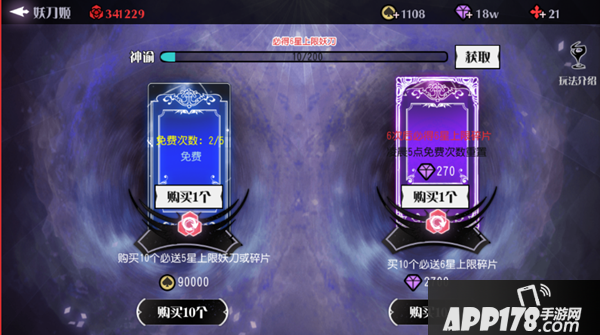 妖刀作为游戏最主要的培养系统,主要来源于以下几点,十连抽——最快捷粗暴产出妖刀的途径,妖刀圣域——趣味性玩法产出代币,成就任务奖励——阶段性妖刀奖励,商店——包括竞技商店及圣域商店都可以兑换妖刀碎片。
