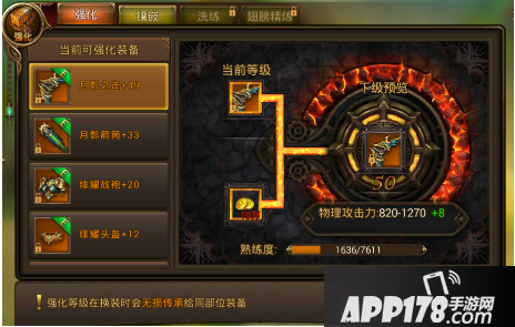 1.装备强化。点击游戏主界面左下方的箭头,选择“强化”,即可进入装备强化界面,强化装备需要数量不少的金币,为了快速刷怪,小版建议大家优先强化能够提升攻击力的装备。