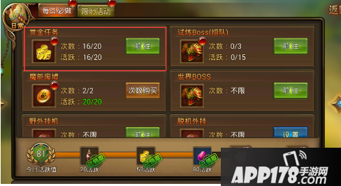 1.赏金任务。完成46级主线任务后开启。不仅能够获得海量经验,还能赚取金币,为我们强化装备提供资源。