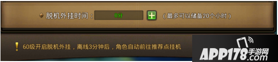 3、离线挂机需要挂机时间,最多只能储备20小时。