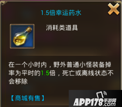 在游戏中,可以在商城中购买1.5倍幸运药水,挂机的时候使用,可以提升1.5倍的掉率。