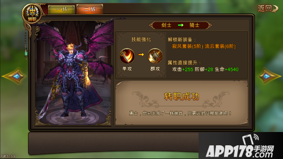 此外,每个职业还有转职的机会。当等级到达一定的级别时,就可以进行转职了,转职的特殊之处在于强化初始技能,变单攻为群攻,还可以提升升级时赠送的属性点。