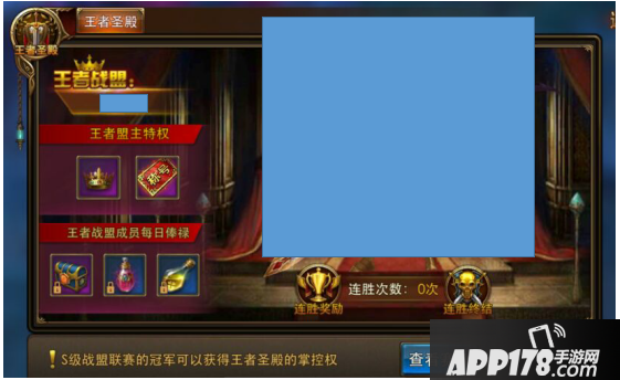 在S级联赛取胜的战盟除了荣登王者圣殿被众人膜拜外,盟主将获得独特称号,这个称号将给盟主带来大量属性加成,而获胜战盟成员每日也会获得丰厚奖励。