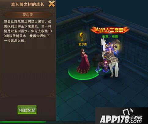 完成第一阶段的任务且等级达到285级,即可领取第二阶段任务:收集100个双圣树露水!