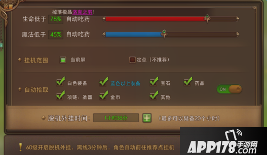 野外地图和刷不尽的野外怪物是MMORPG游戏的特色。游戏中有人性化的离线挂机功能,即使不在线,经验也在飙升哟。