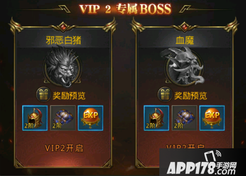 从名字就能看出来,这个BOSS和VIP等级挂钩。不过,看到VIP三个字是不是以为要付费才能打?显然不是的,在一刀传世里VIP是免费的,只要你勤奋完成任务,达到升级条件,自然对应的VIP等级的BOSS就会开启,奖励也随着VIP等级越高越丰富。VIP BOSS是每日5点进行刷新的,所以要记得每天都去打掉哦。