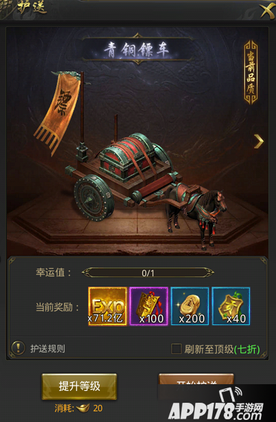 每日10:00-24:00将开启行会护送。玩家在镖局内可刷新提升镖车品质,完成护送可获得经验、贡献、荣誉等奖励。镖车品质越高,可获得的奖励会丰富。但是护送过程中可能会遭受到其他行会成员的抢劫,若不幸被劫,也可呼叫其他行会大佬帮忙夺回奖励的哦!