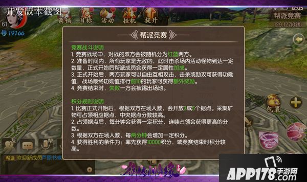 2、 帮派竞赛开启前帮会成员会收到提示进入战斗场地,开启帮派竞赛后20分钟为竞赛准备时间;