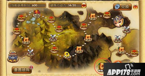 破阵时如果遇到“新”商店字样的事件,会开启神秘宝库,在神秘宝库中会出现打折的高级材料和高级装备,运气好甚至可以遇见橙装备。