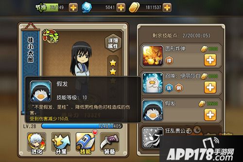 桂小太郎的外貌冷酷而英俊,然而实际上他却是个残念系的天然呆,总是一本正经的干着些毫无下限的事儿,而他的宠物伊丽莎白更是一个迷样生物。因为在日文中假发的发音和桂相近,导致其他人经常把桂的名字念成假发,而他每每都会一脸严肃的吐槽“不是假发,是桂!”,因此假发就成了桂小太郎在游戏中的被动技能,该技能可以为他减免男性角色对其造成的伤害,所以千万别小看假发(桂)哦!