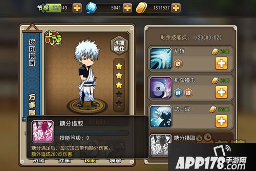 坂田银时对糖分的执着,已经可以用狂热来形容了,长时间不摄入糖分,这个家伙就会变得狂躁不安,对糖分的渴求简直深入灵魂,他甚至曾经一次性吃了7杯草莓巴菲,虽然之后在自己的床上翻滚了一个晚上...因此在游戏中“糖分摄取”,成为了坂田银时的一个被动技能,其效果就是每次攻击附加额外伤害,看来糖分补充足够的坂田银时,才能发挥出真正的实力啊。