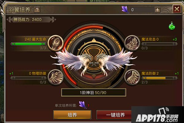 对羽翼的培养较为关键,羽翼升阶所获得的属性加成效果能够叠加,高等级的羽翼能够为人物带来高额的战力加成。对于神羽的培养个人建议物理或法术攻击优先,生命次之,防御最后。