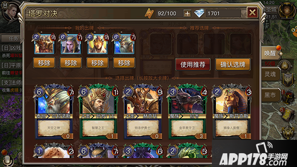 3.根据敌方神灵卡牌的类型,选出一组的参战有优势的卡牌
