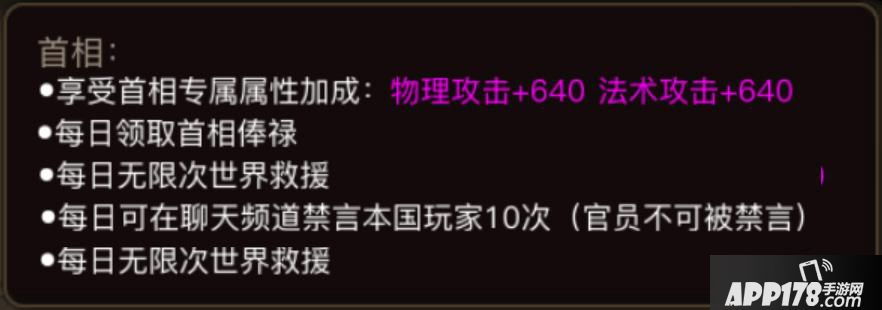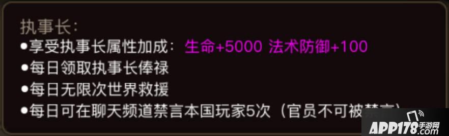 在《权力与荣耀》游戏中,每个国家都会有八个官员职位,分别:国王、王后、大将军、首相、公爵、侯爵、侍卫长、执事长,他们都是由真实玩家扮演。