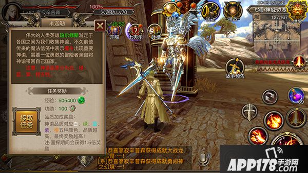 与米迦勒交谈,前往敌国取得神谕。神谕品质越高,奖励越丰厚。完成任务即可获得大量经验、功勋、地精宝藏奖励。神谕任务在圣光普照期间(12:00-14:00)可获得1.5倍奖励加成,每天可以完成2次神谕任务。