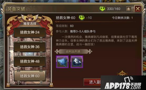 “拯救女神”副本有多种玩法,一种是解除封印,一种是击败来袭的怪物。两种玩法需要抵御几轮怪物的进攻才能算是防守成功。最后的奖励根据雅典娜剩余的血量评分,血量越高奖励越丰厚。一般为组队进入,不过即使你一个人进入副本,电脑也会为你自动分配一波队友NPC,不用担心会孤军奋战。