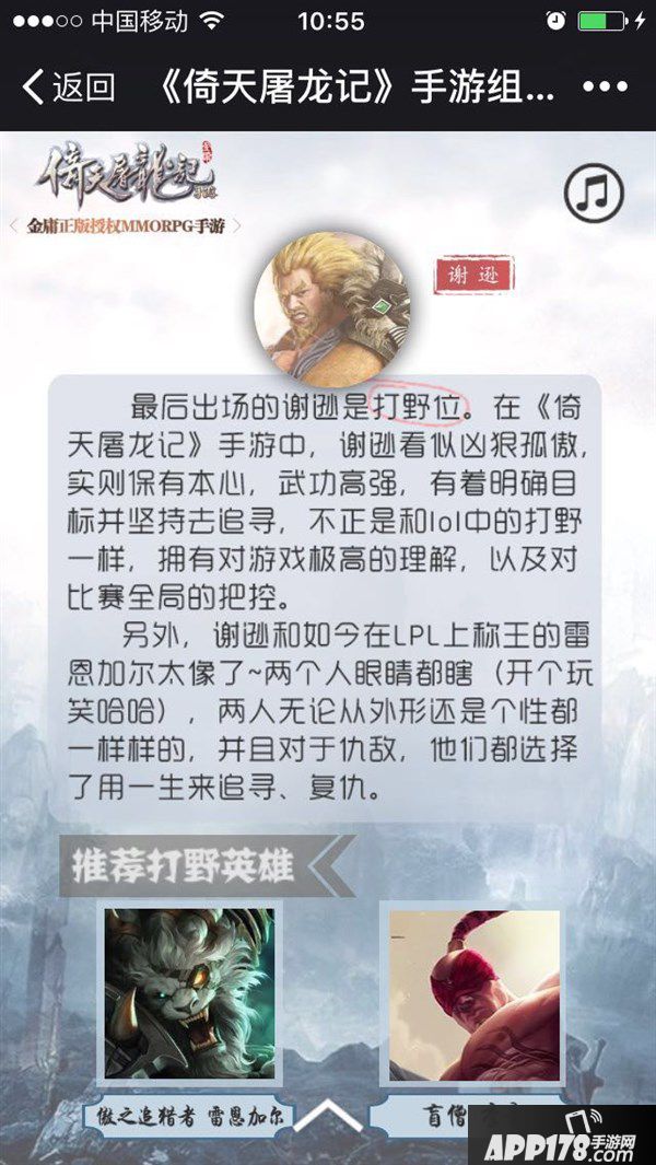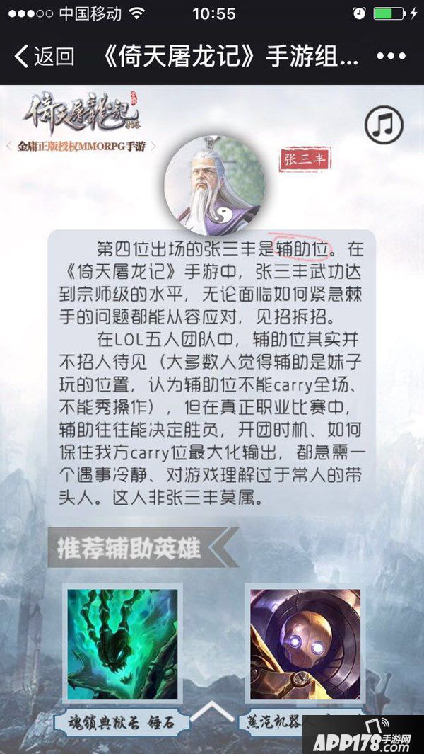 《倚天屠龙记》的全明星阵容分别是:上单张无忌、中单周芷若、ADC赵敏、辅助张三丰、打野谢逊。