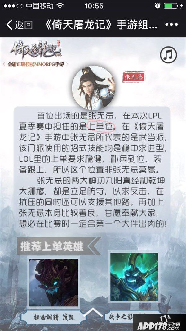 虽然我一直觉得张无忌整体上与祖安狂人更像,但很明显这名叫做不要说话的倚天粉丝有自己独到的看法,他认为作为上单的张无忌还是扭曲树精和战争之影与其更像,应该是看到了张无忌那令人发指的防御能力吧。