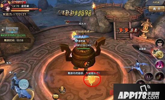能够快速获得冲穴丹药的方法就是保卫丹药房!没错,丹药房是个副本~和牧马山副本不同,虽然也要4名玩家组队一起进入副本,但丹药房是通过倒计时来结算玩家的奖励。副本一开始,丹炉内共有240颗子风露,此等灵丹妙药必然会被诸多不轨之人的觊觎!一拨又一拨的小偷会跑来偷丹药,这个时候就需要有行侠仗义的江湖人士来守护丹炉,保护丹药不被小偷偷走~