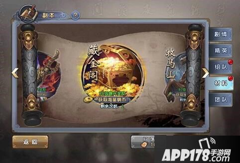 铜币副本,又叫“藏金阁”副本,是游戏中获得铜币的主要来源之一,重要性毋容置疑。每位玩家每天可进入2次,是的你没看错,只有2次,就算你是VIP玩家都不能多进1次!这样也从根本上拉近了平民玩家和土豪们的差距,真的国产良心啊!