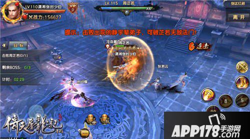 周芷若血槽空掉之后会入魔,刷新出一个满血的BOSS,注意躲避加强为扇形范围的飘雪穿云掌。