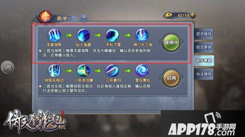 各位侠士在启用武学套路时可看到,【武当剑阵】套路是以施展太虚剑阵来增加攻击力,再辅以灵活多变的剑法来近身缠斗敌人。