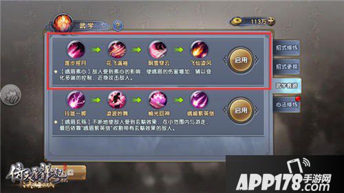 各位侠士在启用武学套路时可以看到,【峨眉素心】套路是以敌人受到素心的影响,从而使峨眉的伤害增加,并辅以变化多端的控制,来近身攻击敌人。