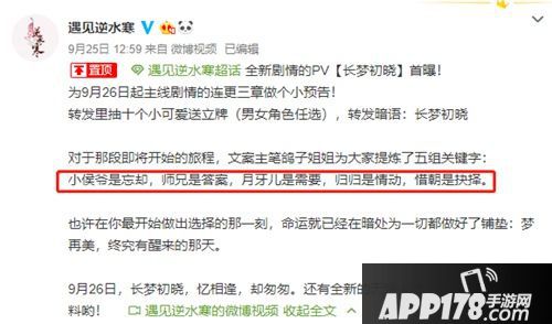 官方对后续剧情的每位男神只给了两个字概括,却引起了玩家们的无限遐想。要知道,在此前的剧情中,小侯爷方应看刚刚与旅妹上演了甜宠之吻,转眼间就要上演失忆梗真是令人难以接受,不过也有夫人表示:失忆只是暂时的,剧情小刀之后才会更甜。