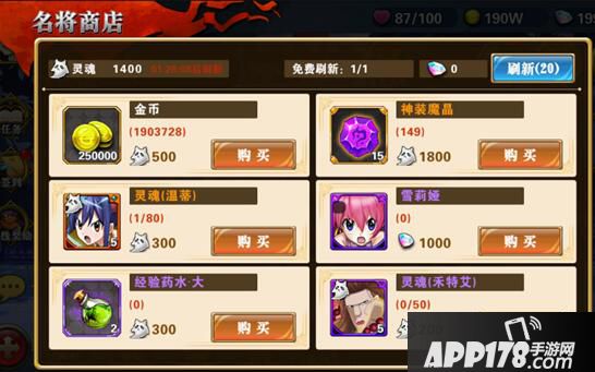 名将商店内可以用灵魂来兑换很多珍惜的道具,还可以兑换珍惜魔导士的灵魂碎片。
