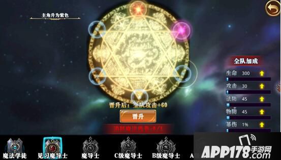 可以看出,主角的提升空间是非常大的!每次提升头衔都可以增加全队的属性,同时需要消耗魔法卷轴残卷。