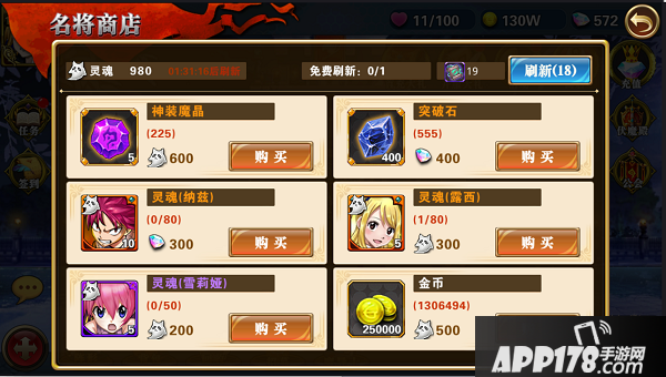 商店每天有一次免费刷新的机会,如果一次没有看到自己想要的商品,就要使用刷新道具来完成刷新了。