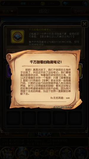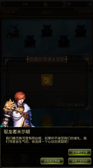 对于勇士们来说,游戏前期的引导是至关重要的,与传统的游戏引导不同,在《英雄来挂机》中引导者的对话不仅是关于游戏的小诀窍,同时还有福利相送哦!瞧,在游戏中遇见闲逛的GM,并向他扔了一个臭鸡蛋,反而获得了一个被封印的宝箱。另外,只要累计击败20个关卡的怪物,宝箱的封印就会解除!爆笑对话福利多多,相信自己的第一直觉就能获得奖励哦!