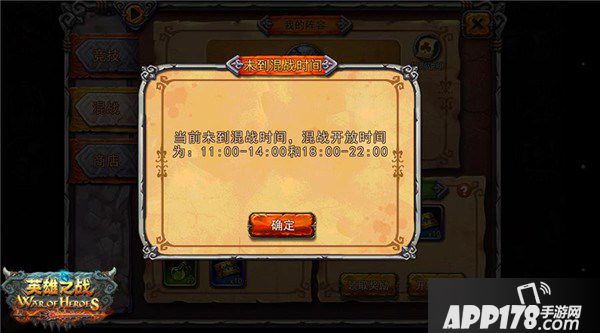 在达到指定的等级后,玩家可以通过“对战”的按钮进入pvp界面,点击“激情乱斗”即可以进入《英雄之战》最具特色的玩法——6人乱斗的匹配场景。不过小编温馨提示“激情乱斗”属于游戏当中一个限时开放的玩法,只在每天11:00——14:00与18:00——22:00两段时间开放,想要体验的玩家们要注意时间。