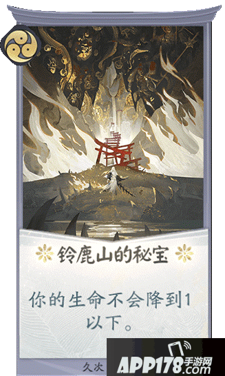 他的两张幻境牌也都是具有强守护意义的结界,“铃鹿山的守护”可以在己方式神受到伤害的同时获得一点护甲,“铃鹿山的秘宝”则用于危急关头的救场,有10点耐久,还能让牌手的生命值在守护下不低于一点。