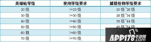 英雄帖有等级区分,英雄帖等级越高完成后获得经验值也越多,目前游戏中分为20级、30级、40级、50级、60级、70级这6档等级区分。不同等级的经验帖,对捕猎怪物的等级也不尽相同。