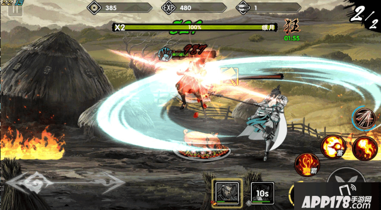 银月出现的时候,火还没烧全部,这段时间用术士(无名也怕火的,之前我以为不怕....),尽量打出伤害,打到50%血或者火烧到全屏了就换主战力。