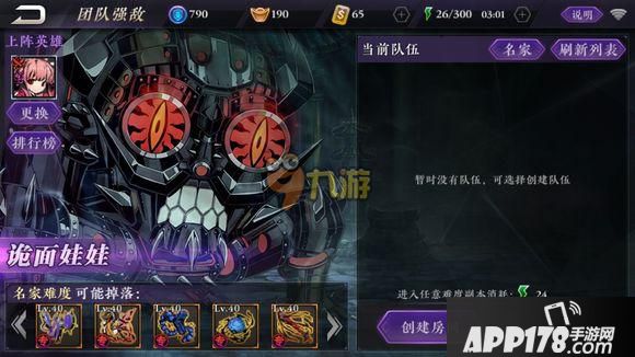 团队系列:团队强敌这个是英雄有几率获得(出战英雄)专属神器的地方,过关之后可以开宝箱每天每个英雄限制开一次(需要消耗钥匙,每天系统送5个钥匙。顺便说一句钥匙溢出了就不送了,数量上限20个,拥有超过20个的系统不会送了,充值vip基本都会超过,我想也不在乎这点了),玩家与玩家组队对刷副本的地方。(抱大腿的地方,前提你要加一个高战的好友 刷起来就简单了)战力有一定要求,有推荐战力,通过测试感觉上面写的推荐数字并不代表玩家战力总和,有玩家说过三个战力总和超过了还是一样打不过,同高手副本一样可以慢慢升级属性再打。