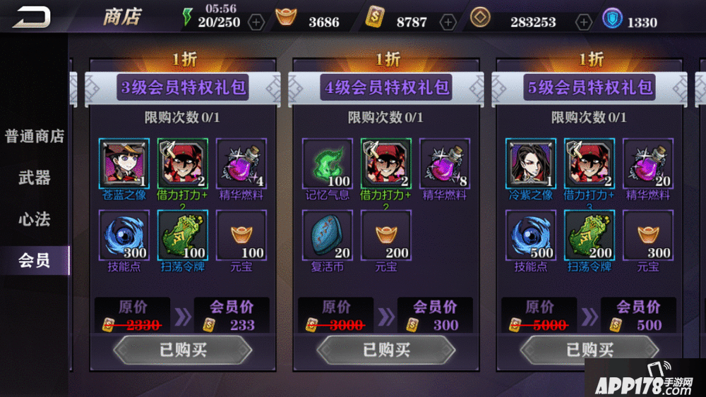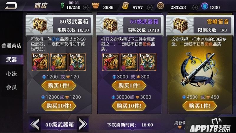 商店也可以购买专属武器,每天下午6点刷新,如果急需提升的可以去碰碰运气,推荐300或450的档次,当然这里是土豪的乐园。