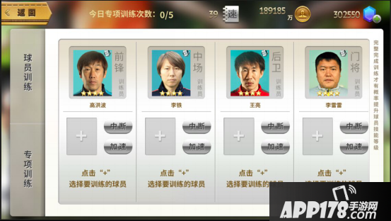 除此之外,你可以在球员训练中选择训练员训练不同位置的球员,每次可以同时训练4个位置的球员。把球员放进训练框中,耐心等待12小时,你的球员就训练完成啦,训练好的球