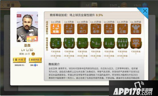 教练系统开启等级需要30级,等级达到后可以免费获得目前石家庄永昌队的主教练亚森,花费一定金额就可以雇佣了。