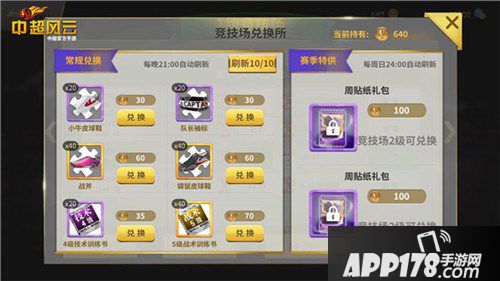 赛季结算奖励顾名思义就是每个赛季结束后发放的定期奖励。所有参加竞技场比赛的玩家都可获得竞技场排位联赛券。联赛券可用来兑换紫色和橙色装备碎片、紫色技能书,甚至还可兑换球员贴纸。